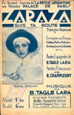 Zaraza [ Suis ta route ] Genre : Tango - Date : 1928 - Musique : Tagle Lara, Benjamín. - Paroles : Tagle Lara, Benjamín. - Paroles françaises : Chamfleury, R - Edition française : Julio Garzon. s/d. Paris - |